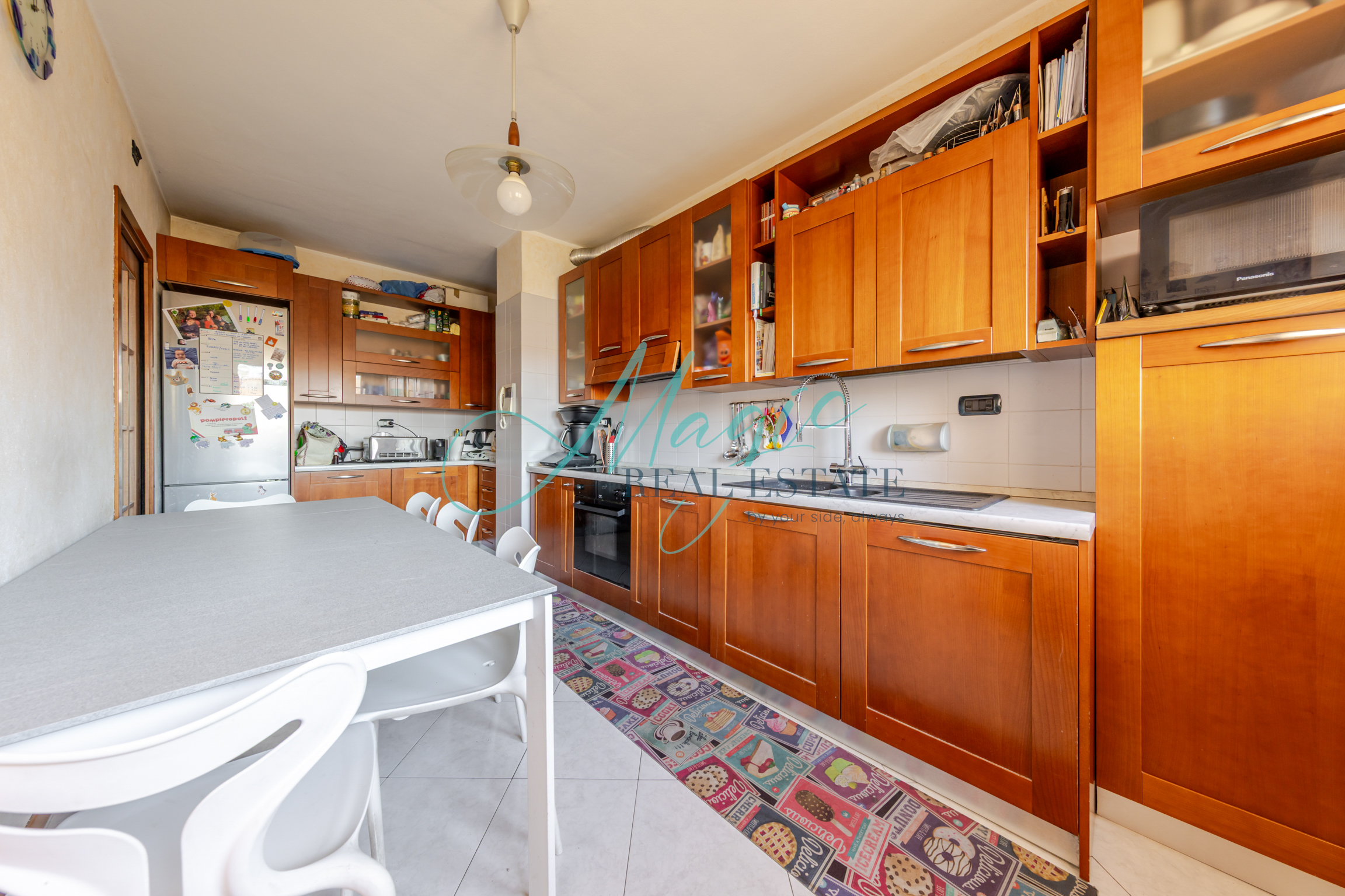 La cucina, spaziosa e ben distribuita, può essere vissuta come ambiente indipendente o integrata alla zona giorno a seconda delle esigenze familiari, offrendo grande versatilità.