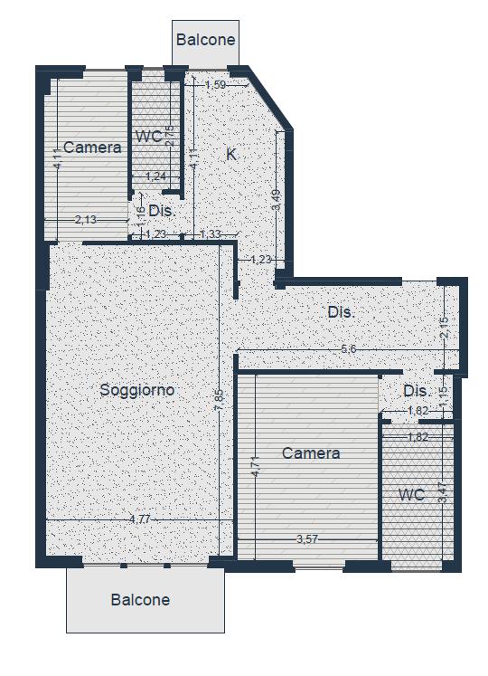 La soluzione si presenta da personalizzare, consentendo di sfruttare al meglio la generosa metratura: la conformazione della pianta permette, per chi lo desidera, la realizzazione di una terza camera da letto, mantenendo comunque un buon equilibrio tra zona giorno e zona notte.
