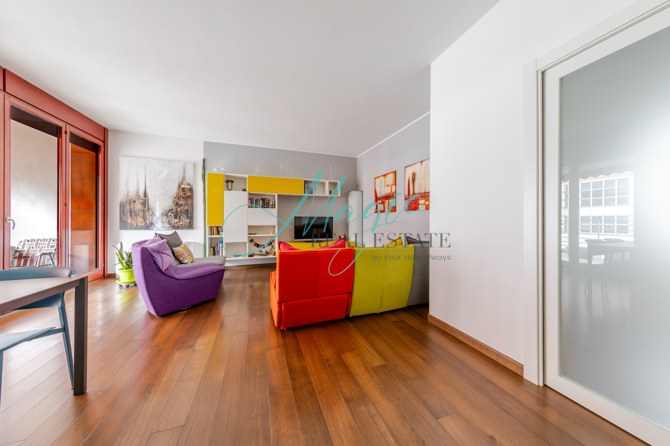La doppia esposizione garantisce una piacevole luminosità durante tutto l’arco della giornata, mentre il terrazzo di circa 15 metri rappresenta uno spazio esterno ideale per momenti di relax o per accogliere ospiti con discrezione e stile. La zona notte è pensata per offrire comfort e privacy, grazie alla presenza dei doppi servizi e alla distribuzione equilibrata degli ambienti.